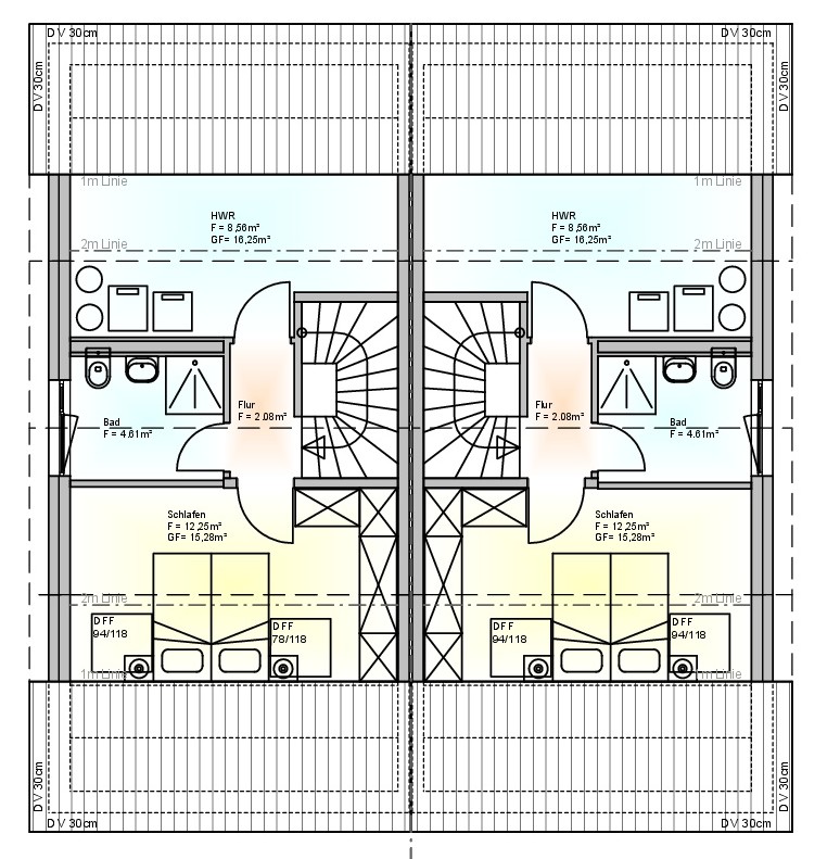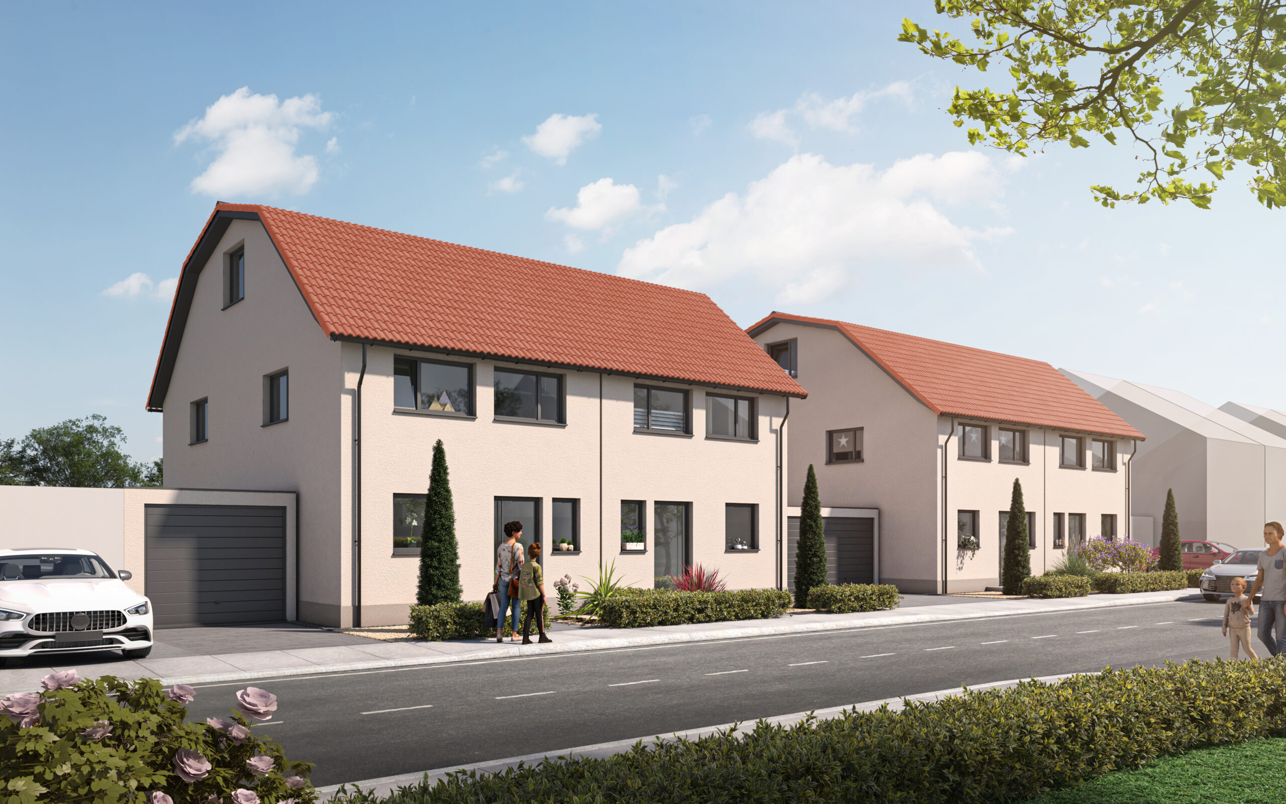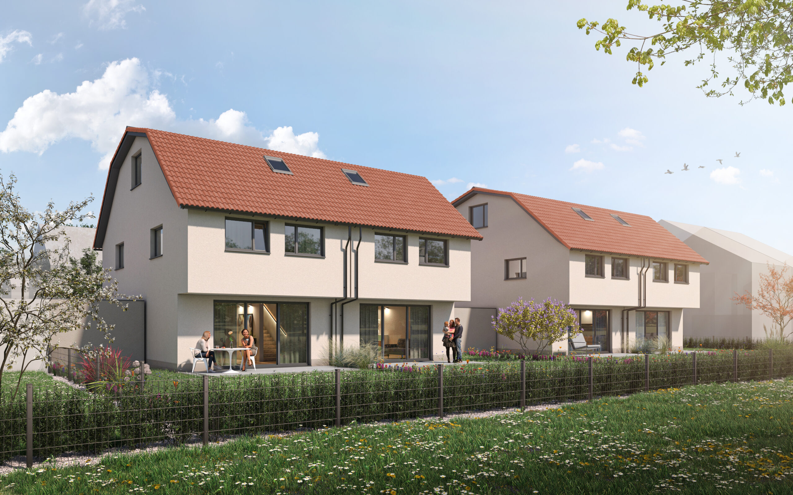 „In den Dreißig Morgen“, im Neubaugebiet von Dudenhofen, errichten wir 6 Doppelhaushälften. Die Häuser verfügen über ein Erd-, Ober- und Dachgeschoss. Mit unserer Ausbauvariante besteht die Möglichkeit, einen separaten Elternbereich mit Schlafzimmer und separatem Duschbad entstehen zu lassen.